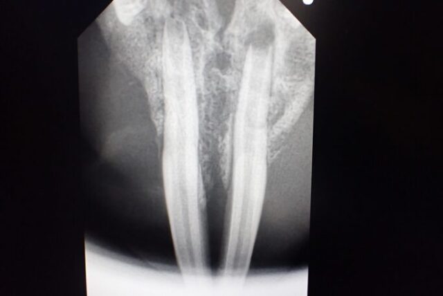 抜歯処置を含め長期の抗生物質療法をおこないましたが死亡しました。慢性経過になると非常に予後が悪いため できるだけ早くご相談ください